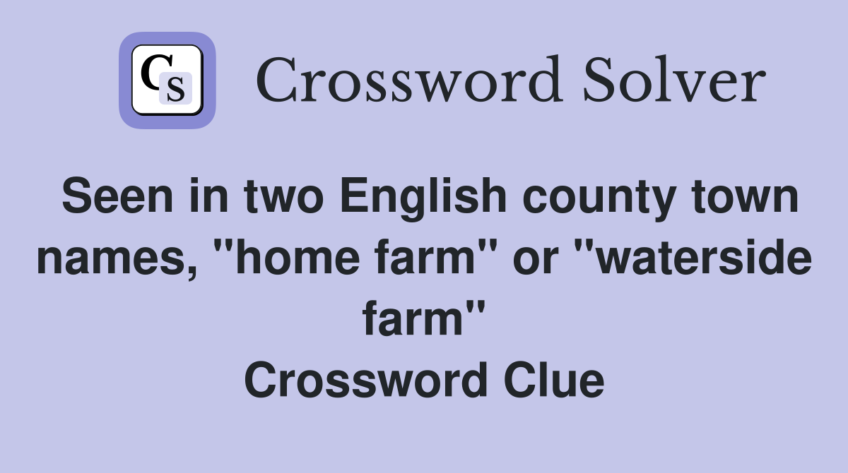 Seen in two English county town names quot home farm quot or quot waterside farm