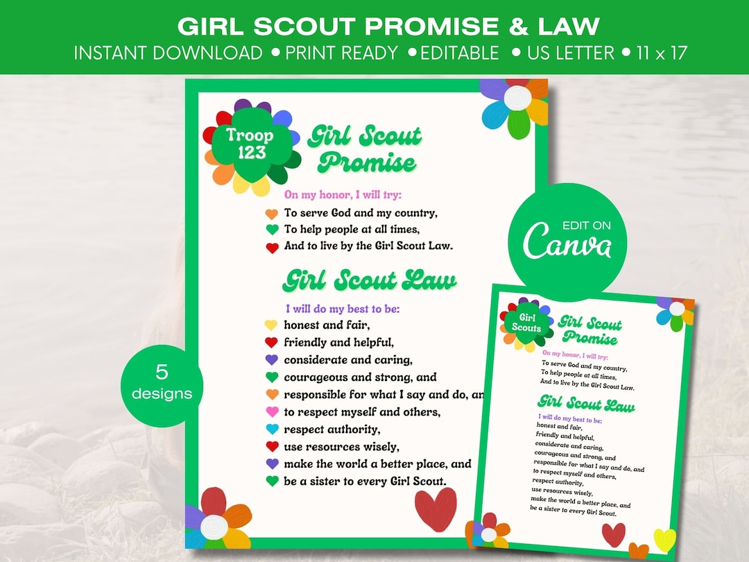 Printable Girl Scout Promise and Law Poster for Troop 8 5x11 Etsy UK