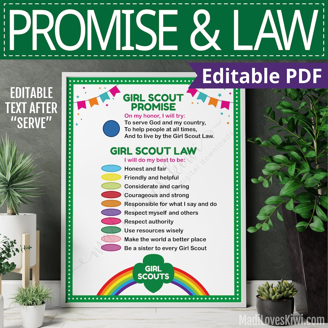 Girl Scout Promise and Law Printable Editable Troop Number Etsy Finland