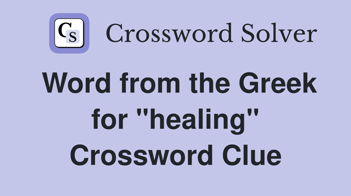 Word from the Greek for quot healing quot Crossword Clue Answers Crossword