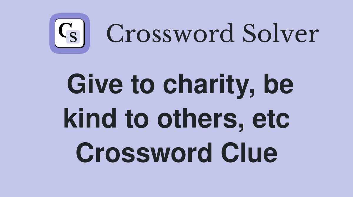 Give to charity be kind to others etc Crossword Clue Answers