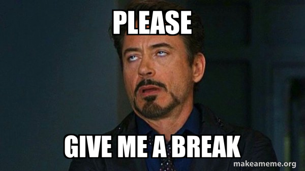 Please Give me a break Tony Stark Eye Roll Meme Generator