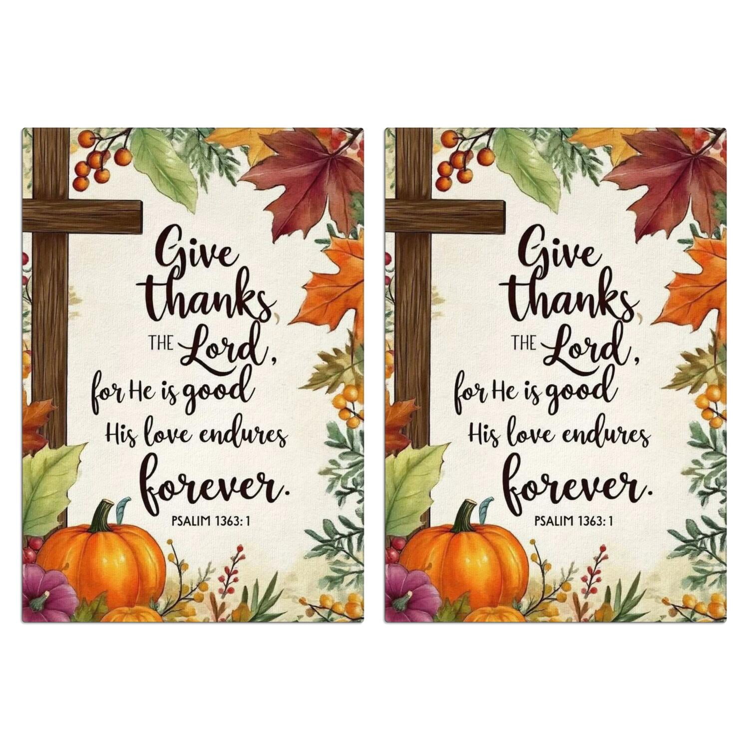 2 Pcs Funny Kitchen Towels Fall Give Thanks the Lord Microfiber Dish