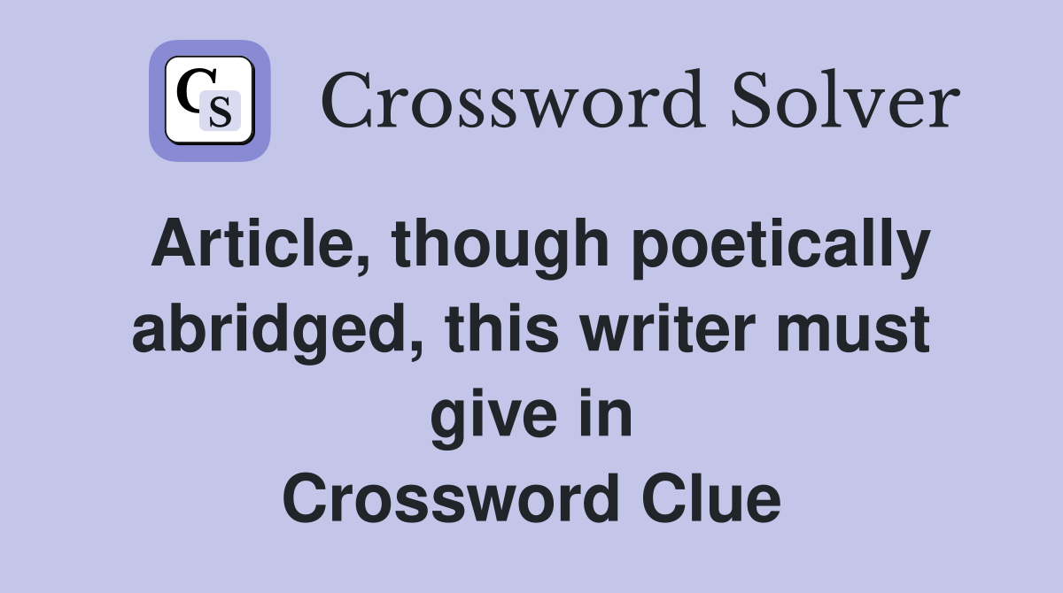 Article though poetically abridged this writer must give in