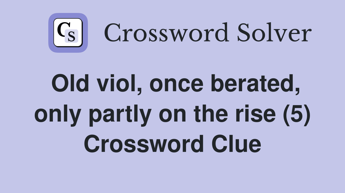 Old viol once berated only partly on the rise (5) Crossword Clue
