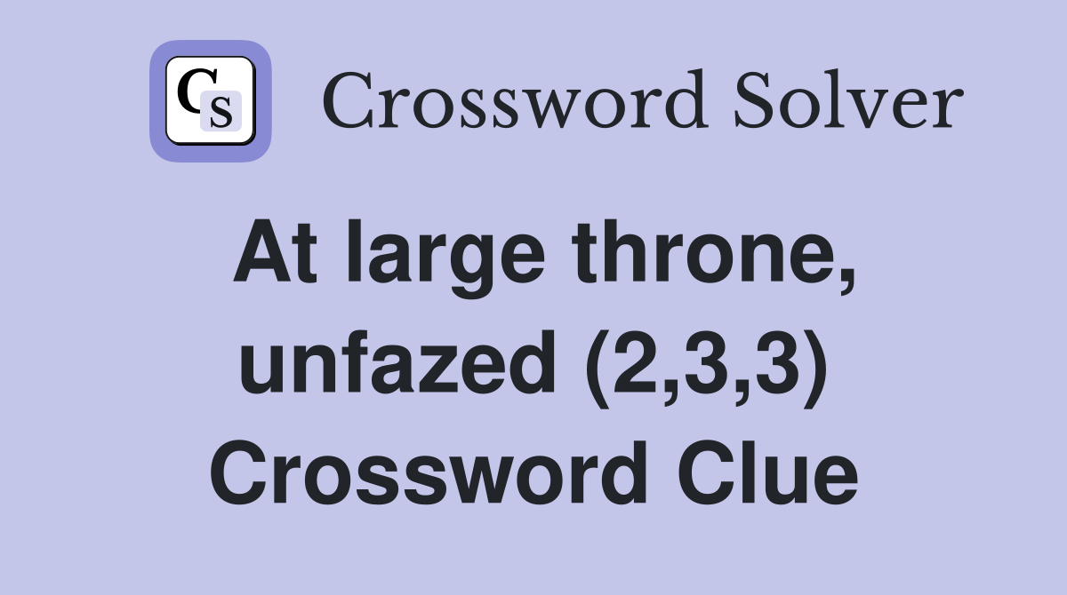 At large throne unfazed (2 3 3) Crossword Clue Answers Crossword