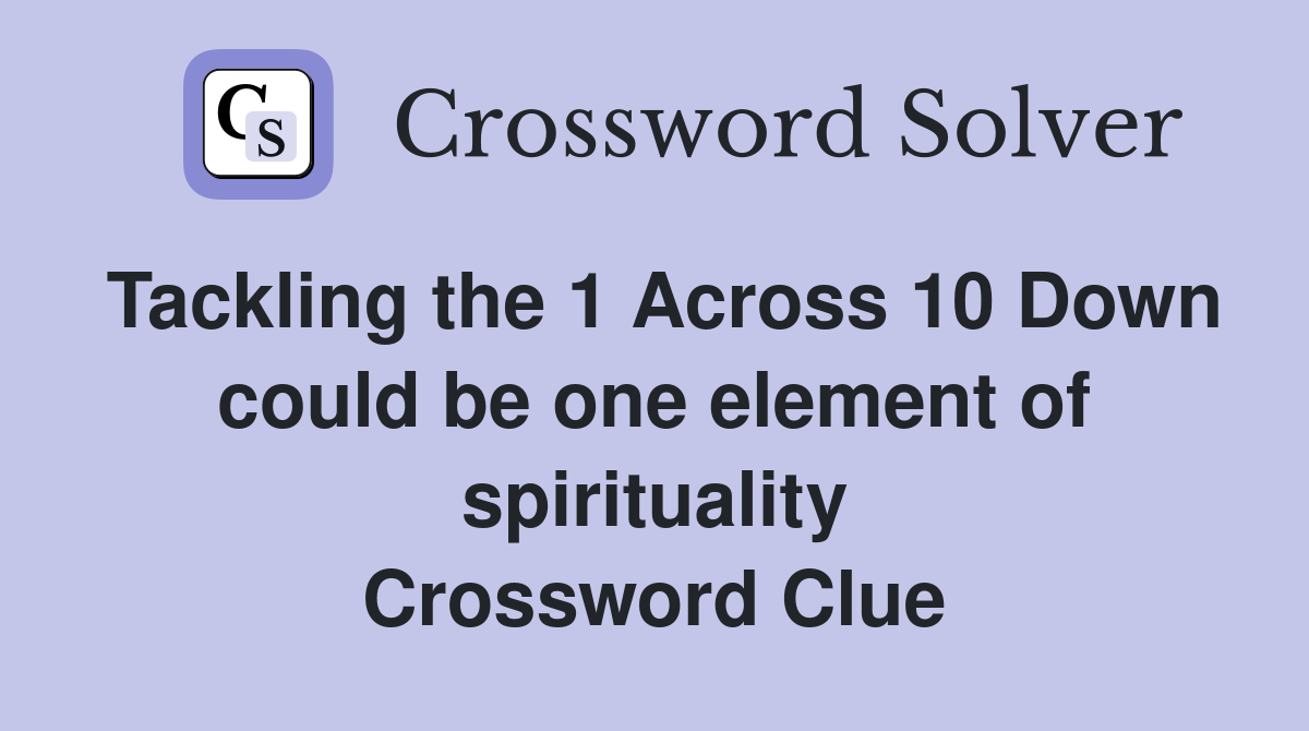 Tackling the 1 Across 10 Down could be one element of spirituality