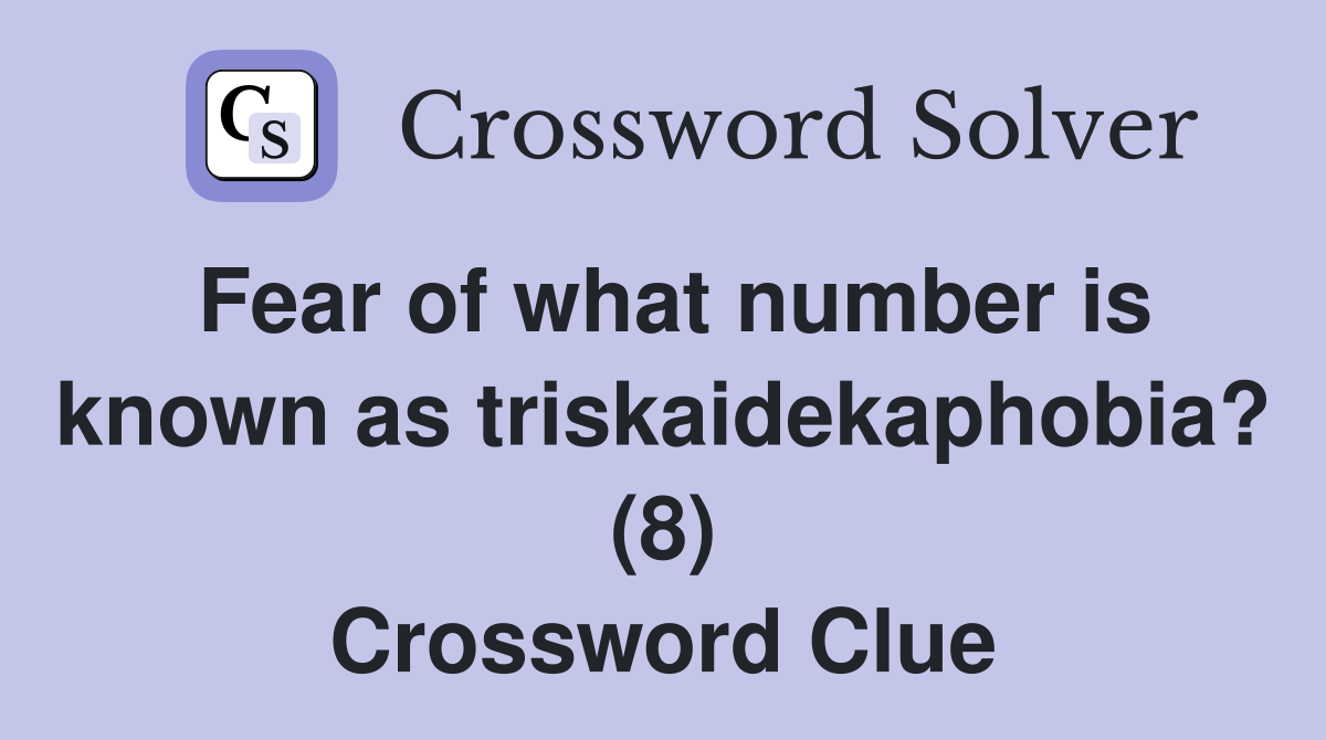 Fear of what number is known as triskaidekaphobia? (8) Crossword Clue