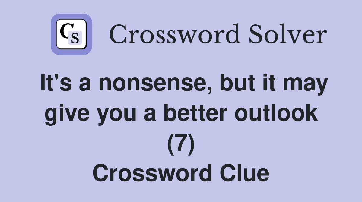It #39 s a nonsense but it may give you a better outlook (7) Crossword