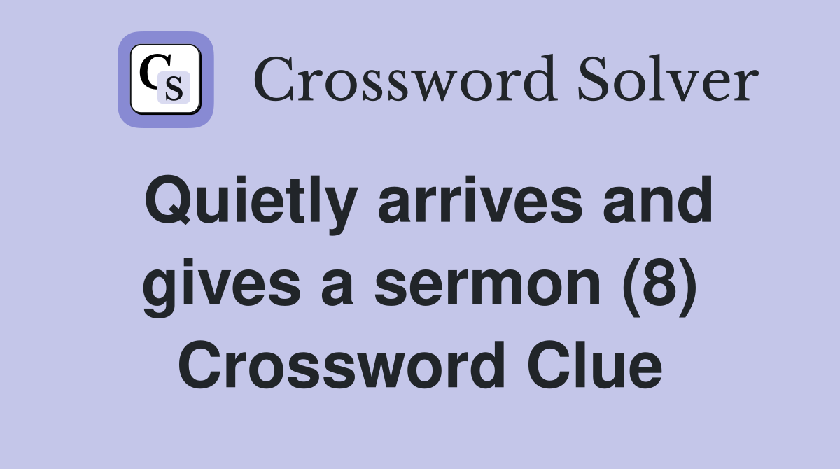 Quietly arrives and gives a sermon (8) Crossword Clue Answers