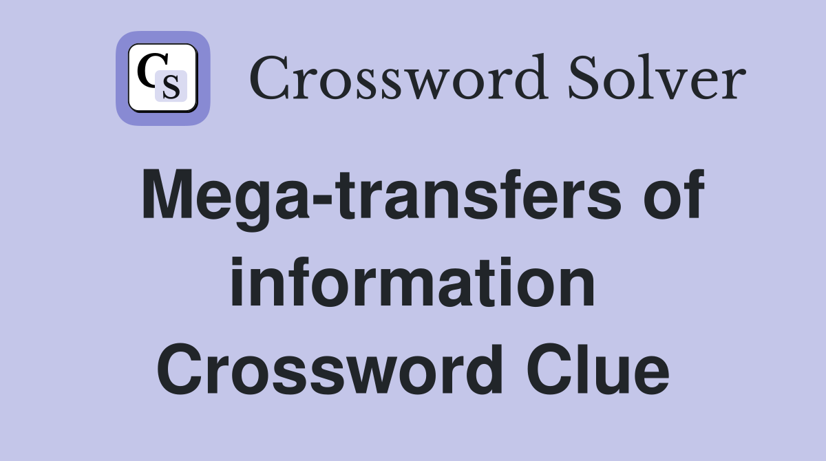Mega transfers of information Crossword Clue Answers Crossword Solver