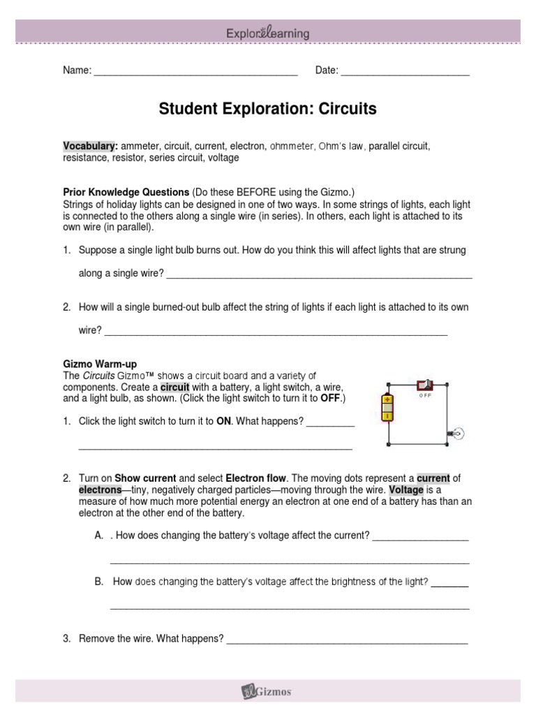 SOLUTION: Circuits Student Exploration Gizmo Worksheet with answers