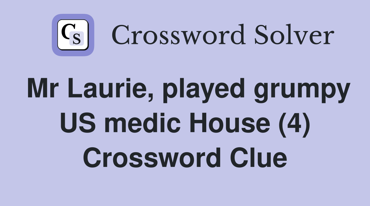 Mr Laurie played grumpy US medic House (4) Crossword Clue Answers