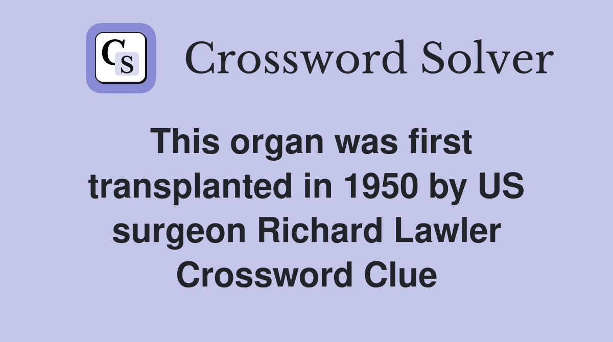This organ was first transplanted in 1950 by US surgeon Richard Lawler