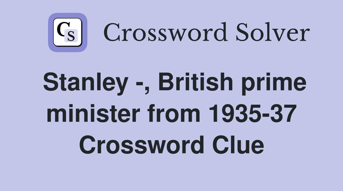 Stanley British prime minister from 1935 37 Crossword Clue Answers