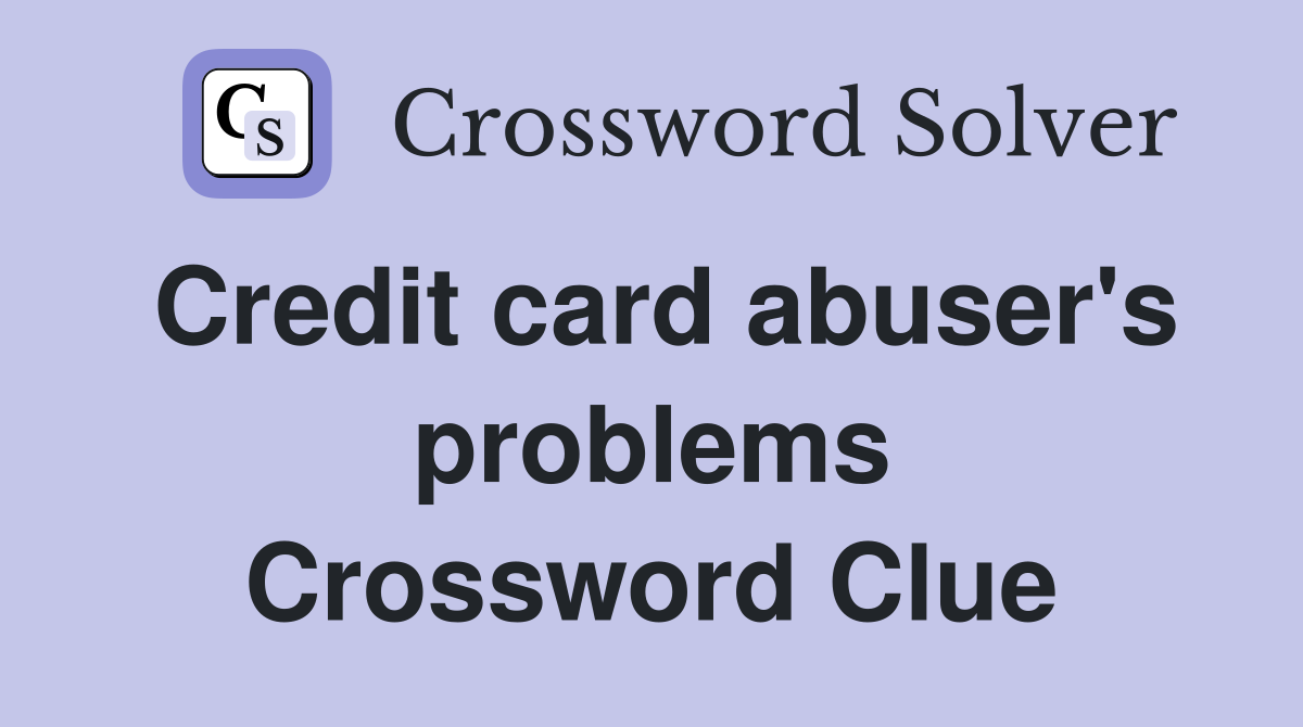 Credit card abuser #39 s problems Crossword Clue Answers Crossword Solver