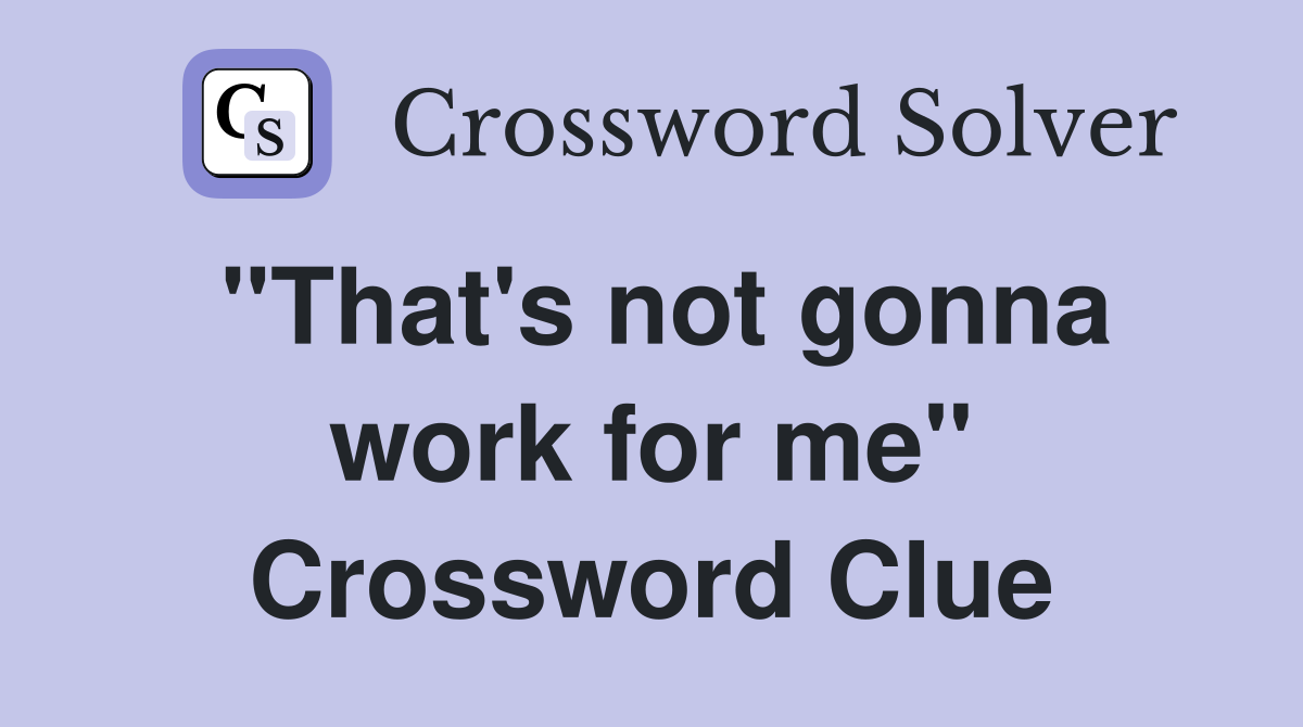 quot That #39 s not gonna work for me quot Crossword Clue Answers Crossword Solver