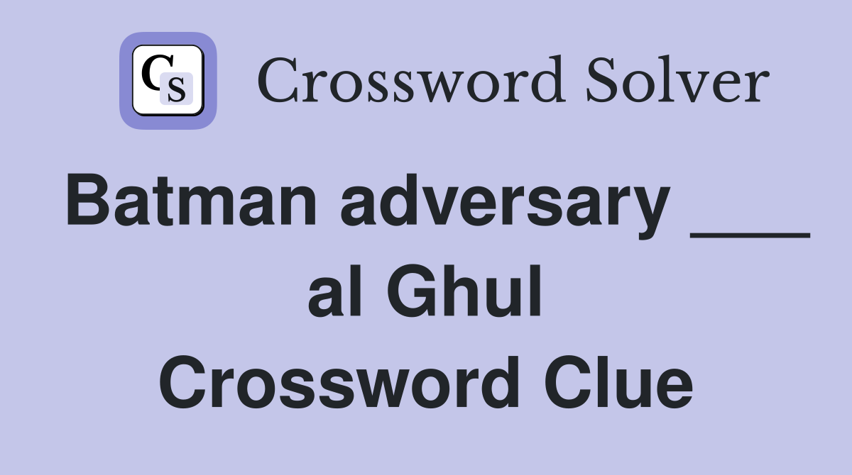 Batman adversary al Ghul Crossword Clue Answers Crossword Solver