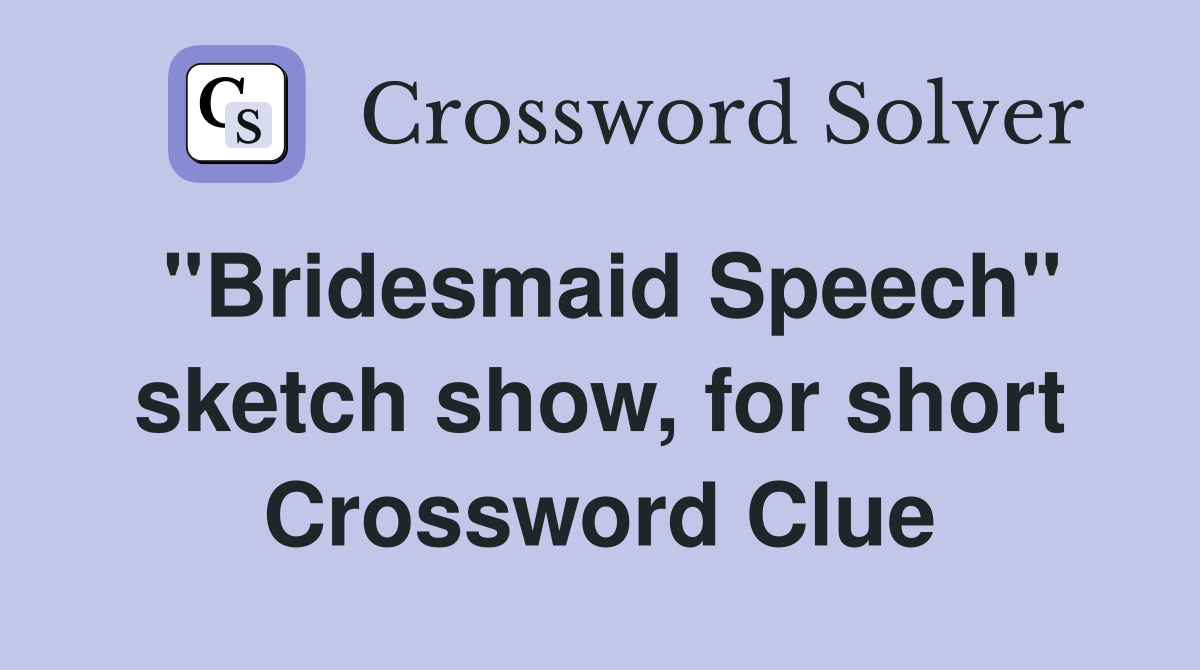 quot Bridesmaid Speech quot sketch show for short Crossword Clue Answers