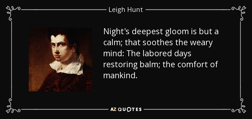 Leigh Hunt quote: Night #39 s deepest gloom is but a calm that soothes the