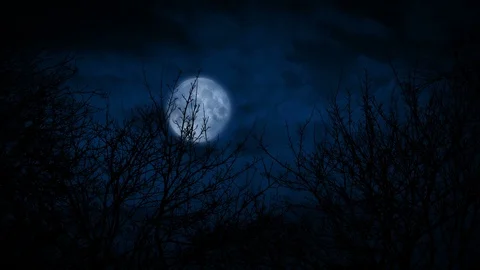Full Moon At Night Rising Between Tree Stock Motion Graphics SBV