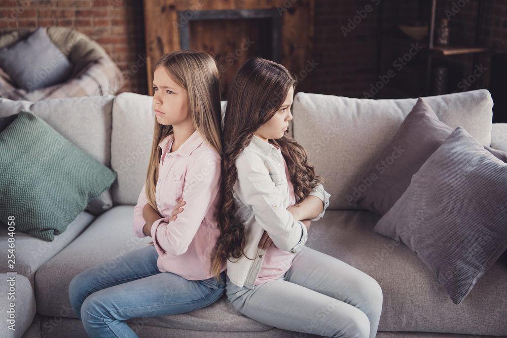 Profile side view portrait of two nice attractive charming gloomy