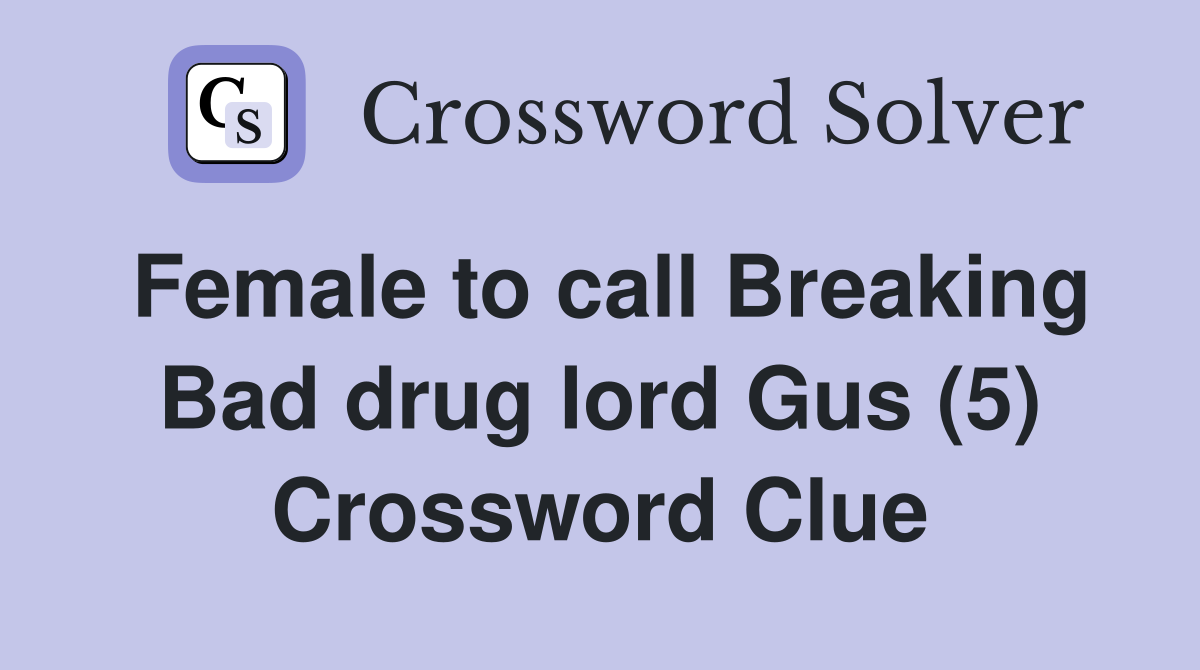 Female to call Breaking Bad drug lord Gus (5) Crossword Clue Answers