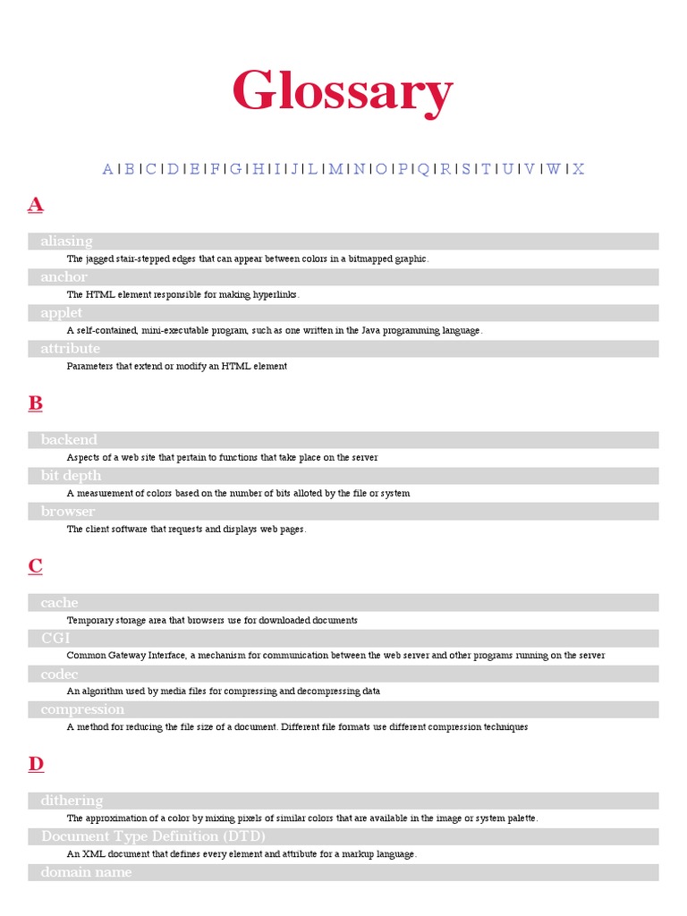 Glossary PDF Html File Format