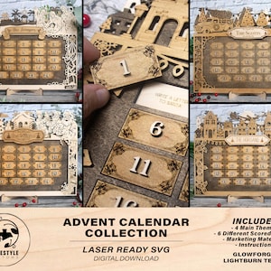 Christmas Advent Calendar Laser Cut SVG Bundle for Glowforge