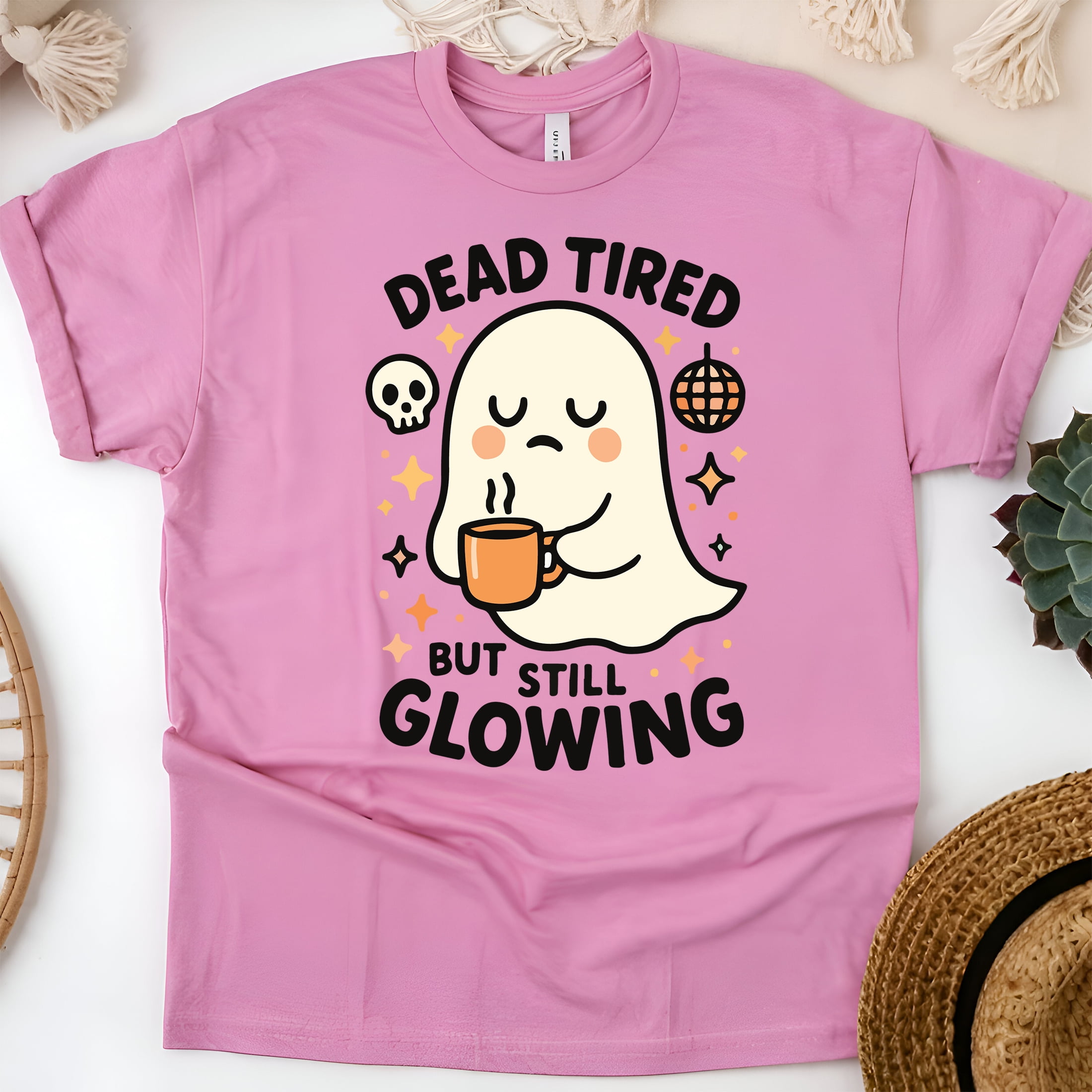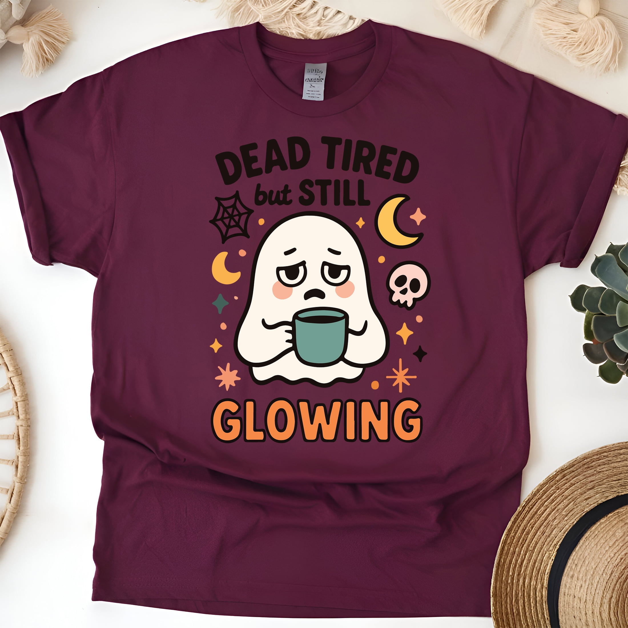 Dead Tired But Still Glowing Shirt Funny Ghost Graphic Tee Unisex