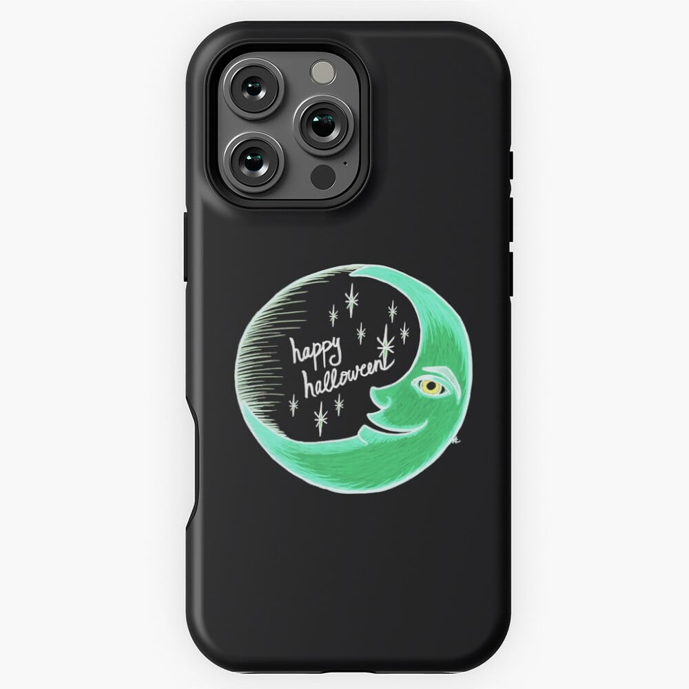 Glowing Crescent Moon Happy Halloween Phone Case for iPhone 16 15 14 13