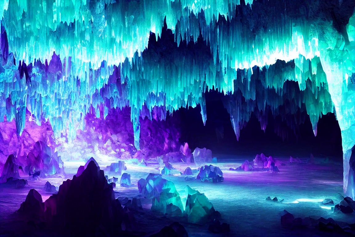 prompthunt: An ethereal crystal cave system green blue and purple