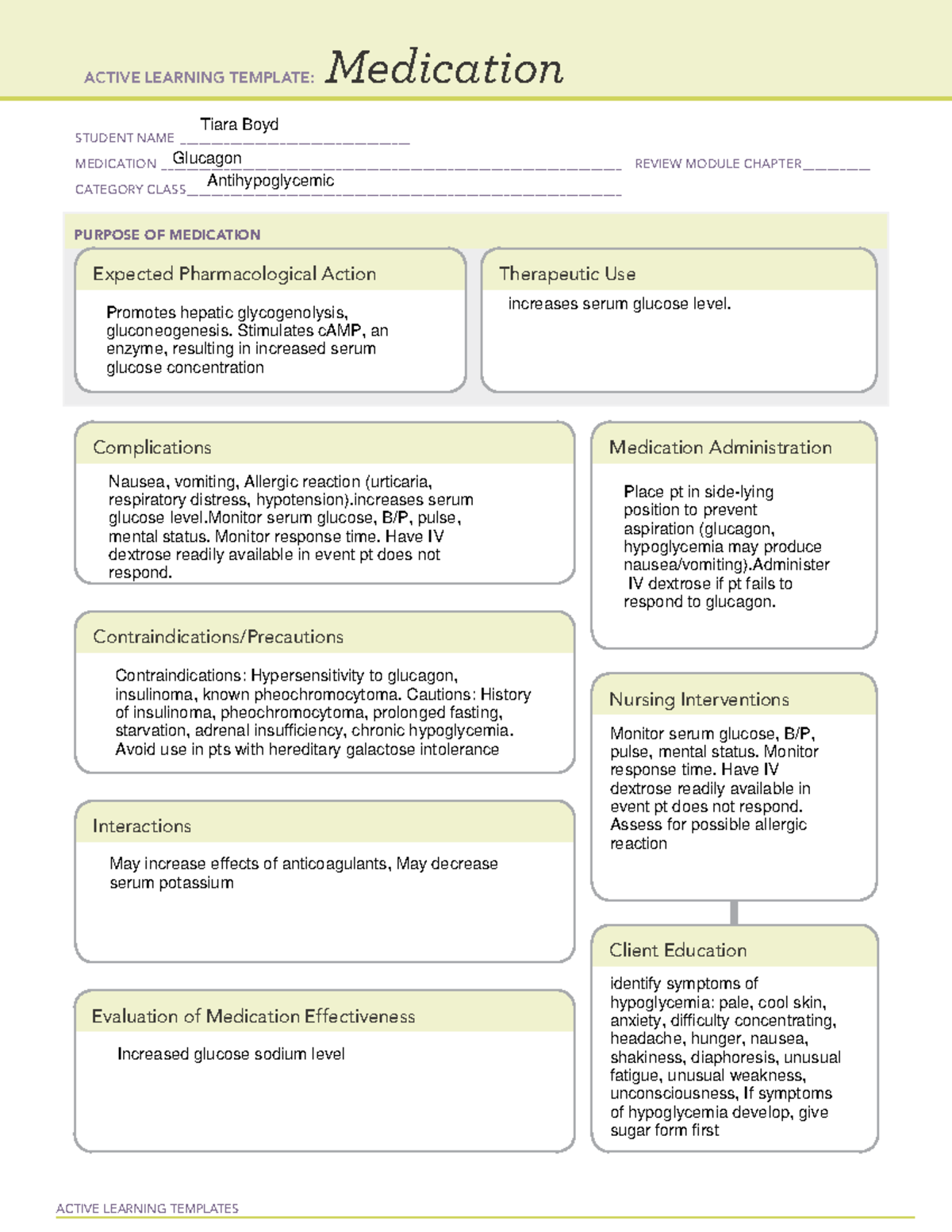 Medication Template Glucagon ACTIVE LEARNING TEMPLATE MEDICATION