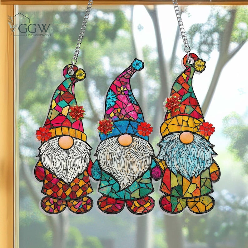Gnome ACRYLIC Suncatcher Gnome Sun Catcher Ornament Glass Gnome