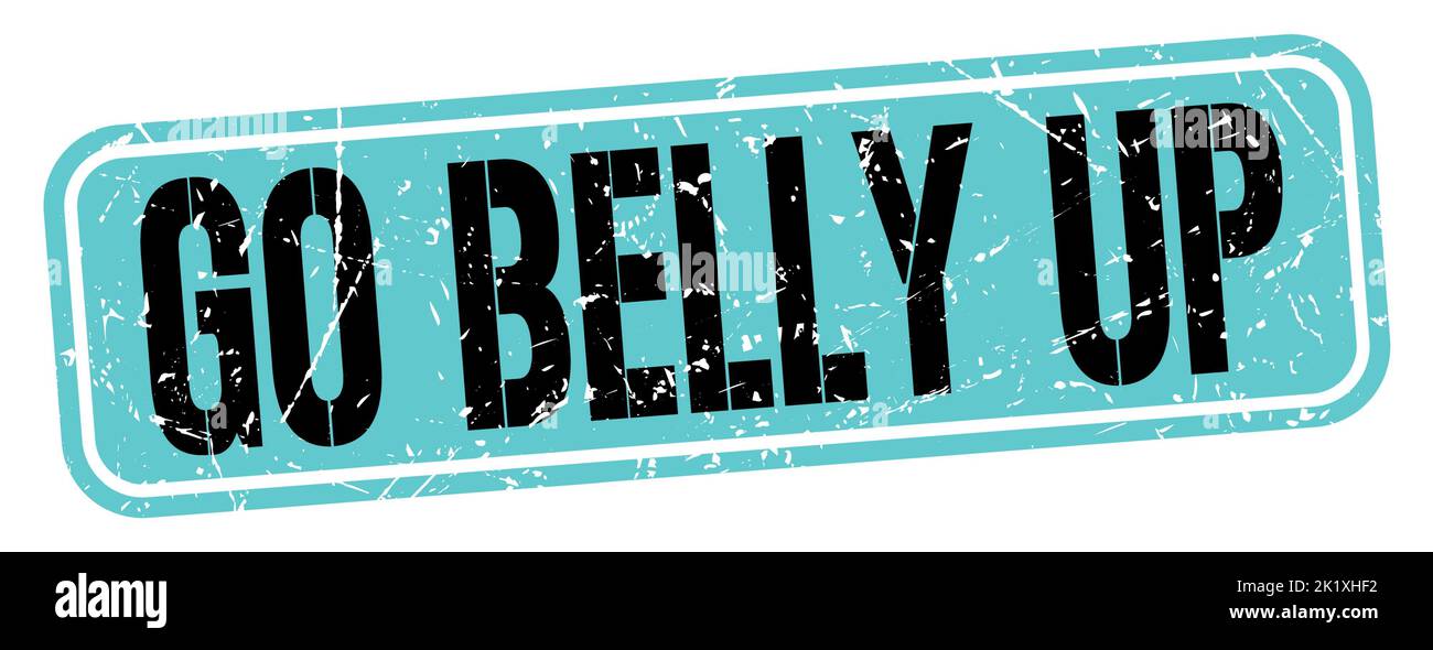 GO BELLY UP text written on blue black grungy stamp sign Stock Photo
