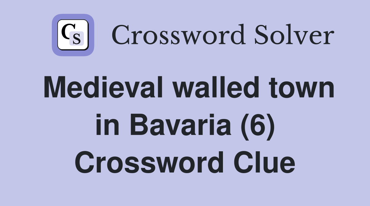 Medieval walled town in Bavaria (6) Crossword Clue Answers