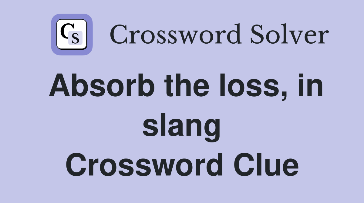 Absorb the loss in slang Crossword Clue Answers Crossword Solver