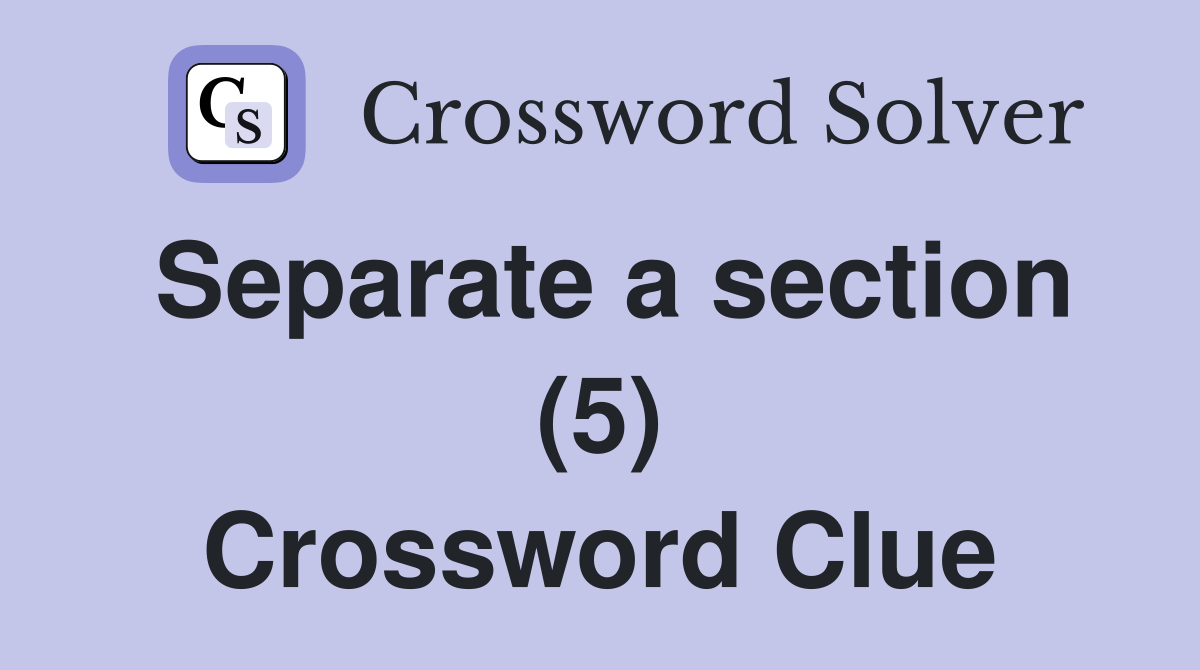 Separate a section (5) Crossword Clue Answers Crossword Solver