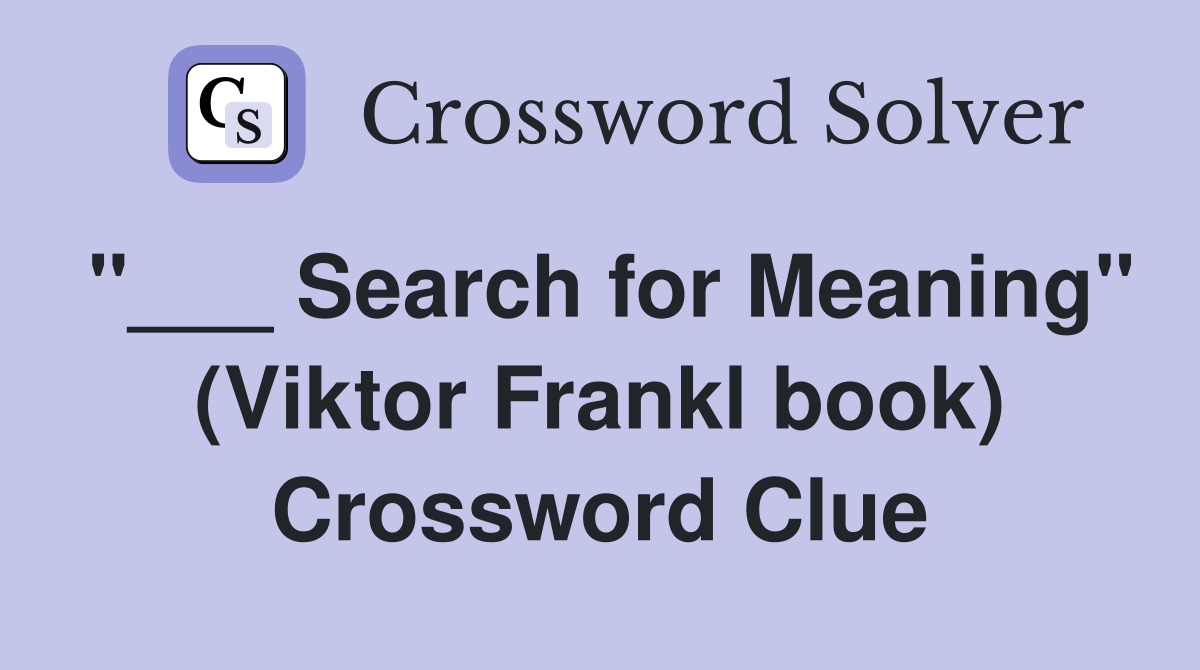 Search for Meaning quot (Viktor Frankl book) Crossword Clue Answers