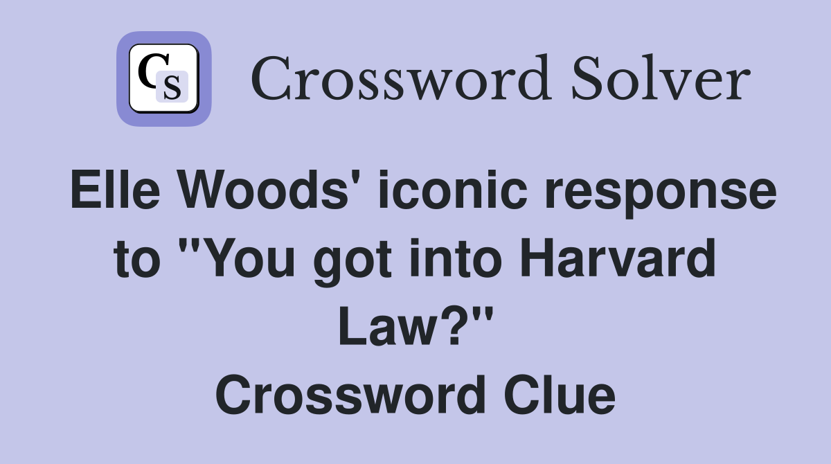Elle Woods #39 iconic response to quot You got into Harvard Law? quot Crossword