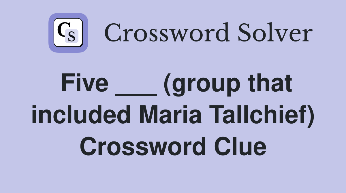 Five (group that included Maria Tallchief) Crossword Clue Answers