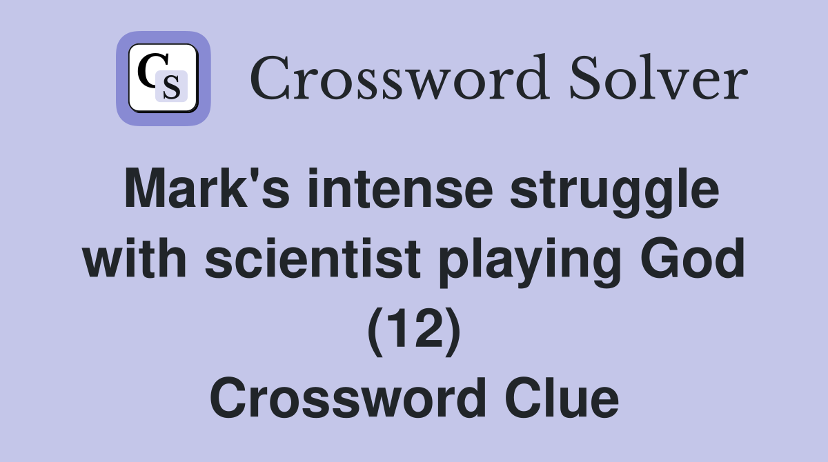 Mark #39 s intense struggle with scientist playing God (12) Crossword