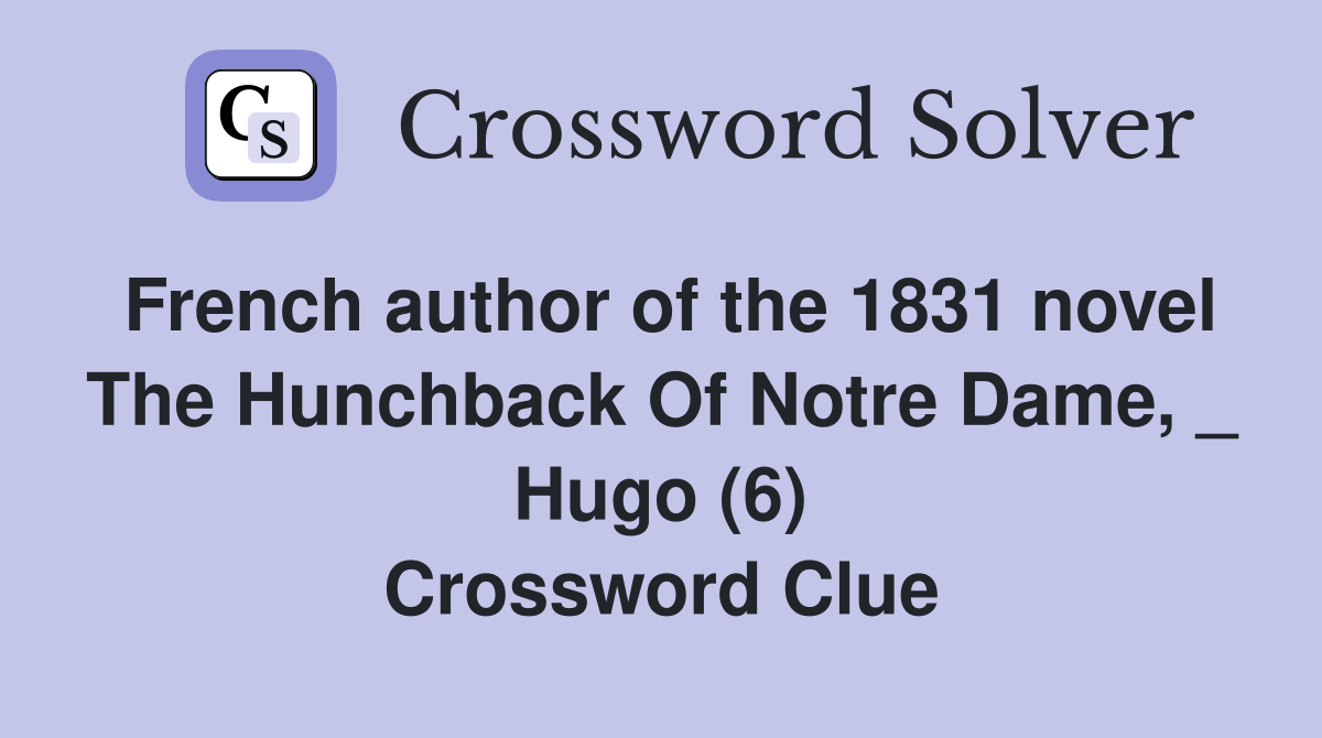 French author of the 1831 novel The Hunchback Of Notre Dame Hugo (6