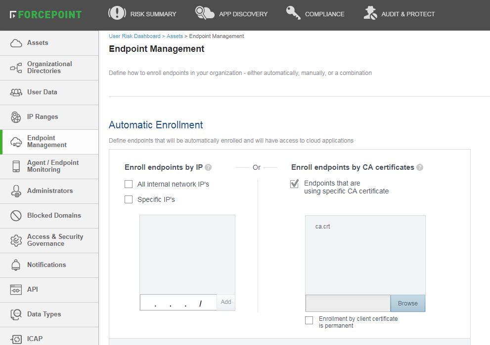 Automatic client certificate enrollment with Mac OSX CASB Agent