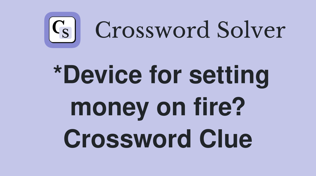 *Device for setting money on fire? Crossword Clue Answers Crossword