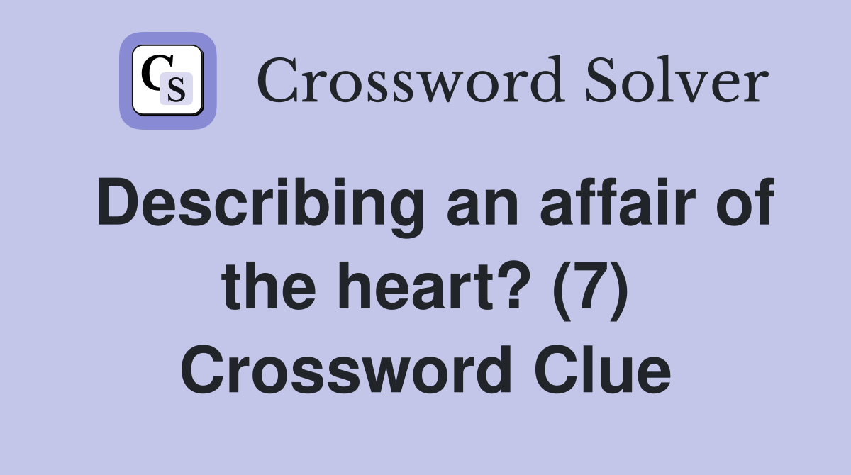 Describing an affair of the heart? (7) Crossword Clue Answers