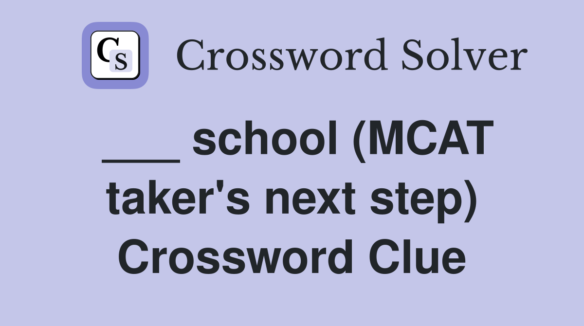 school (MCAT taker #39 s next step) Crossword Clue Answers Crossword Solver