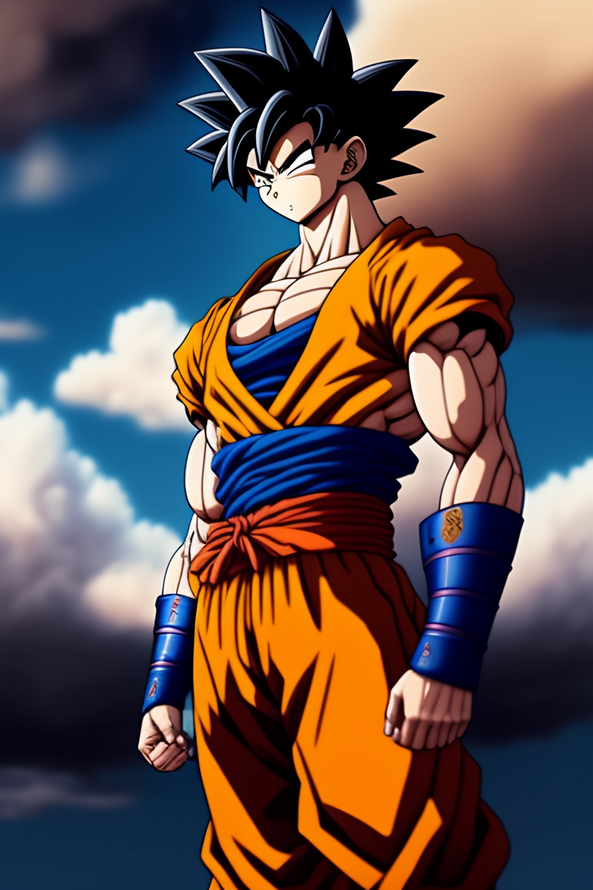 Lexica Goku in his birthday wearing amor pant under the cloudy sky