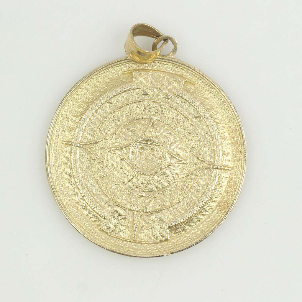 14k Solid Yellow Gold Aztec Calendar Pendant 27MM Property Room