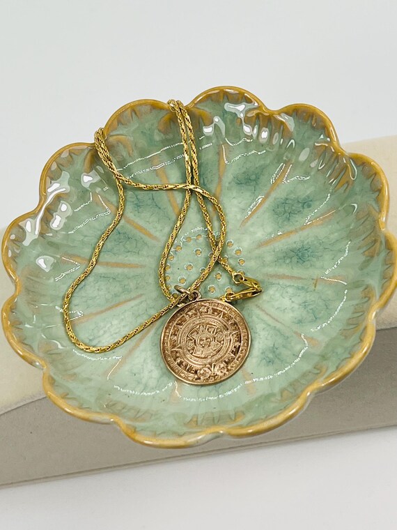 14K Solid Gold Aztec Calendar Pendant Mayan Coin Necklace Etsy